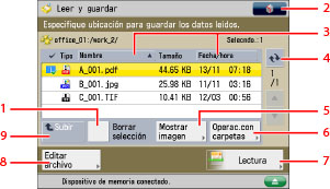 Para conocer las instrucciones acerca de cómo ordenar las carpetas, consultar la información detallada del archivo y editar o eliminar archivos, consulte "Archivos guardados".
