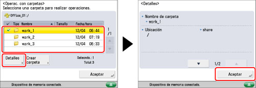 Seleccione la carpeta que desee → pulse [Detalles] → [Aceptar].