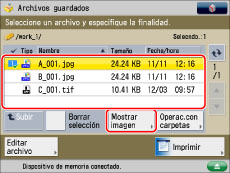Si selecciona varios archivos, sólo aparece el contenido de los archivos seleccionados (resaltados).