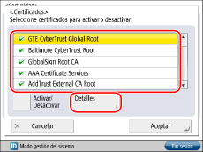 Seleccione un certificado → pulse [Activar/Desactivar].