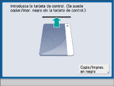 Si activa <Permitir trabajos copia/impresión en B/N>, se muestra [Copia/Impres. en negro] en pantalla para introducir el ID de departamento y el PIN o la pantalla para introducir una tarjeta de control.