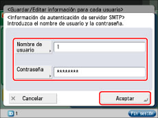 Introduzca el nombre de usuario y la contraseña utilizados para la autenticación de servidor SMTP → pulse [Aceptar].
