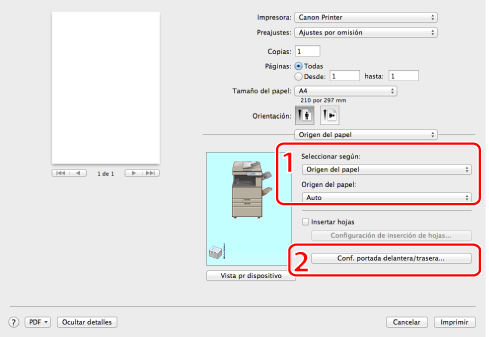 Si desea imprimir en un determinado tipo de papel, especifique el alojamiento donde se encuentra, o el tipo de papel.