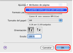 En la opción [Ajustes], seleccione [Guardar como ajuste por omisión] → haga clic en [OK].