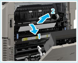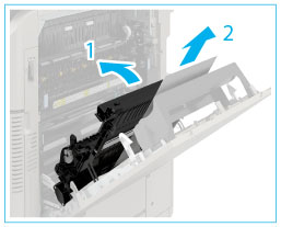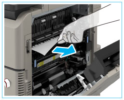 1. Extraiga el papel atascado de la parte inferior de la unidad de fijación.
