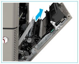 Extraiga el papel atascado por la derecha de la unidad principal.
