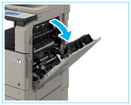 Extraiga el papel atascado por la derecha de la unidad principal.