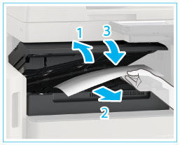 3. Extraiga el papel atascado de la parte inferior de la unidad dúplex.
