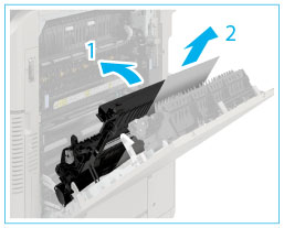 1. Extraiga el papel atascado de la parte inferior de la unidad de fijación.