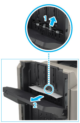 Abra la tapa superior de la unidad de acabado y extraiga el papel atascado.