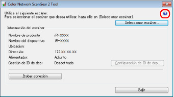 Si desea más información sobre cómo iniciar Color Network ScanGear 2 Tool, consulte "Selección del escáner".