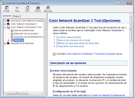Visualización de la Ayuda de Color Network ScanGear 2 Tool