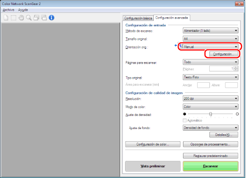 En la ficha [Configuración avanzada], establezca [Orientación orig.].