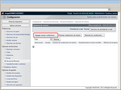 Haga clic en [Agregar nuevas condiciones...] → especifique las opciones de reenvío.
