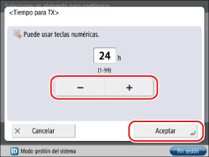 Especifique el tiempo para transmisión pulsando [-] o [+] → pulse [Aceptar].
