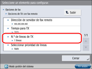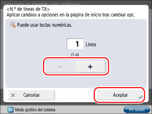 Pulse [-] o [+] para establecer el número de líneas telefónicas que desee utilizar → pulse [Aceptar].