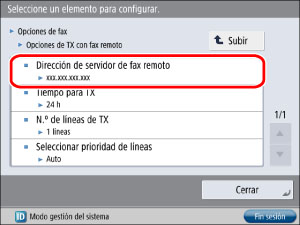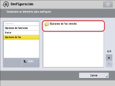 (Configuración) → [Opciones de funciones] → [Enviar] → [Opciones de fax] → [Opciones de fax remoto].