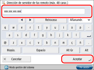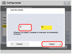 Seleccione [Sí] en <Usar fax remoto> → pulse [Aceptar].
