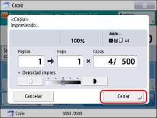 Pulse [Cerrar] en la pantalla emergente que aparece mientras el equipo está imprimiendo.