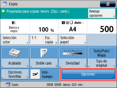 Pulse [Opciones] en la pantalla Funciones básicas de copia.