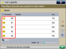 Puede seleccionar y guardar hasta 999 páginas a la vez. Si los originales de doble cara se leen usando el alimentador, se pueden guardar hasta 1.000 páginas. Cuando se llega al máximo de originales que se pueden leer, aparece un mensaje preguntándole si quiere guardarlos.