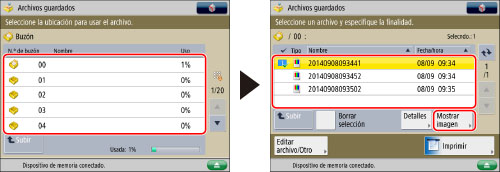 Si selecciona varios archivos, sólo aparece el contenido de los archivos seleccionados (resaltados).