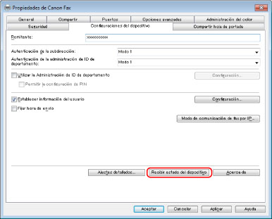 Si va a utilizar una impresora compartida, tendrá que instalar Canon Driver Information Assist Service en el servidor de impresión para poder utilizar la función [Recibir estado del dispositivo]. Para obtener información detallada acerca de cómo instalar Canon Driver Information Assist Service, consulte la "Guía de instalación del controlador de fax" (consulte "Instalación").