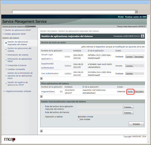 Haga clic en [Iniciar] para la aplicación que desee iniciar.