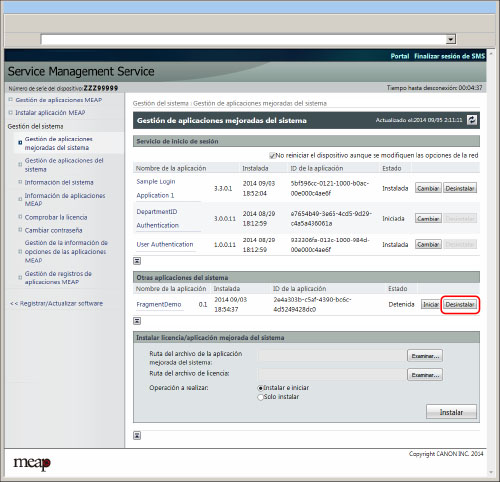 Las aplicaciones del sistema no requieren que se elimine el archivo de licencia antes de desinstalarlas.