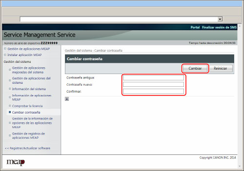 Para impedir un uso erróneo, cambie la contraseña por una que sólo el administrador conozca (cuando comience a utilizar el servicio).