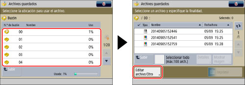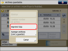 Aunque ordene la lista de archivos guardados pulsando [Nombre] o [Fecha/hora], la lista de archivos se imprimirá en el orden en que los archivos se guardaron en el buzón.