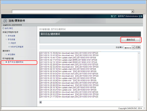 单击[显示日志/通信测试]→[通信测试]→[是]。