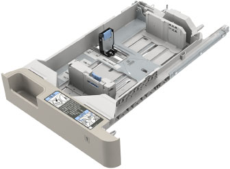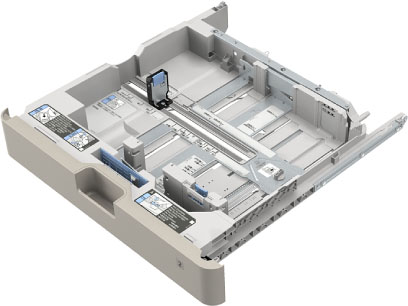 将不同尺寸的纸张添加到纸盒中时,请调整导板。(See "将纸张添加到纸盒中.")