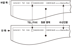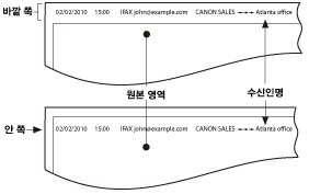 수신인 용지의 이미지 영역 외부에 발신원 기록 정보를 인쇄합니다.