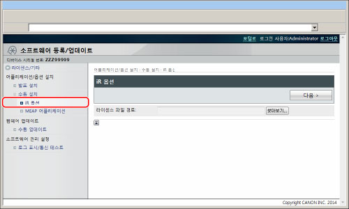 (카운터/기기정보)을 누를 때 화면의 하단 왼쪽에 표시됩니다.여러 시스템 옵션을 설치하려면 리모트 UI를 사용할 것을 권장합니다.
