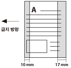 피더에 원고를 넣을 때, 컬러 부분이 아래 그림의 음영으로 표시된 구역에 위치할 경우