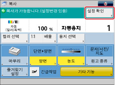 원하는 복사 모드를 설정하고 → [설정 확인]을 누릅니다.
