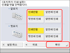 이미 인쇄된 용지(예를 들어 회사 로고)를 앞표지, 뒷표지로 사용하는 경우에는 [인쇄안함]을 선택해야 합니다. 그렇지 않으면 기기에서 사전 인쇄된 용지에 인쇄합니다.