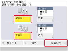 [앞표지] 및 [뒷표지]로 같은 크기 용지를 선택합니다.