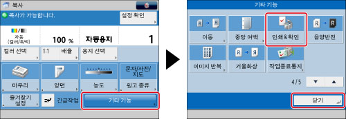 양면]을 설정한 경우 기기는 양면 복사를 수행하지 않고 원고를 한 번에 하나씩 복사합니다. |