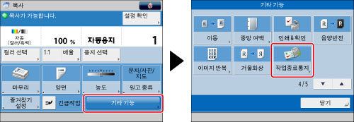 [작업종료통지]를 설정하려면 먼저 주소록에 사용자의 이메일 주소를 저장해야 합니다. (See "이메일 주소 등록.")