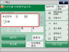 [신규 수신인 제한]에서 [팩스]를 '설정'으로 지정하면 신규 수신인을 입력할 수 없습니다. 이 경우, 로컬 주소록, 리모트 주소록, LDAP 서버 또는 원터치 버튼을 사용하여 저장된 수신인을 선택합니다. (See "신규 수신인으로 송신 제한.")
