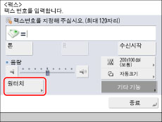 원터치 버튼을 선택하여 수신인 전화 또는 팩스 번호를 지정할 수 있습니다. 원터치 버튼에 대한 자세한 내용은 "원터치 버튼을 사용하여 수신인 지정."을 참고하십시오.