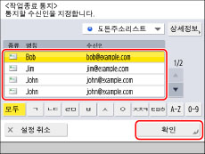 작업 종료 통지의 수신인을 선택하고 → [확인]을 누릅니다.