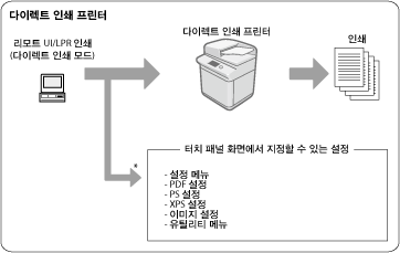 * 별표(*)는 터치 패널 화면에서 지정 가능한 프린터 드라이버 또는 리모트 UI에서 지정할 수 없는 설정을 나타냅니다.