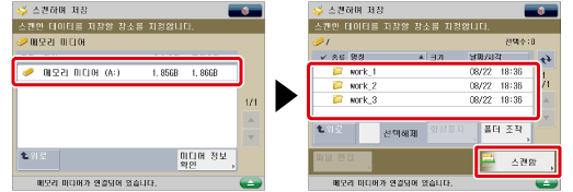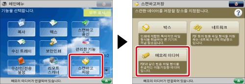 이 모드는 파일을 네트워크에 있는 다른 imageRUNNER ADVANCE 기기의 고급 박스 또는 메모리 미디어에 저장할 경우에만 사용 가능합니다.