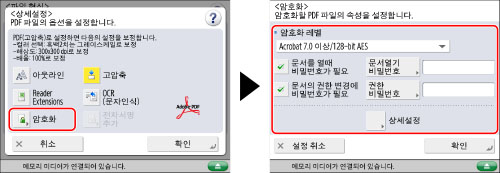 [PDF 형식을 PDF/A로]를 '설정'으로 지정한 경우 암호화 PDF 모드를 설정할 수 없습니다. (See "PDF 파일을 PDF/A로 포맷.")