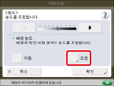 <배경 농도>에서 [조정]을 눌러 배경 농도를 조정할 경우 [자동] 설정이 취소됩니다. 또한, [조정]에서 수동 조정하는 동안 [자동]을 누르면 조정이 취소됩니다. 기기에서 배경에 맞게 농도를 자동으로 조정합니다.