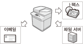 손쉽게 문서를 스캔하여 이메일 또는 I-팩스를 통해 하나 이상의 수신인에게 송신할 수 있습니다. 이렇게 하면 문서 교환이 많은 환경에서 작업 효율성이 향상됩니다. 또한 FTP, SMB 및 WebDAV 파일 서버로 문서를 송신하면 간편한 데이터 액세스 및 관리를 위해 종이 문서를 디지털화할 수 있습니다.