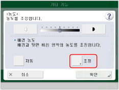 설정이 취소됩니다. 마찬가지로, [조정]에서 수동으로 조정하는 동안 [자동]을 누르면 조정이 취소됩니다. 기기에서 배경에 맞게 농도를 자동으로 조정합니다.